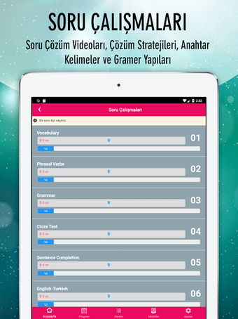 Jedną z najważniejszych cech YDS / e-YDS Hazırlık jest jej obszerna zawartość, która jest specjalnie dostosowana do nowych egzaminów z języka angielskiego YDS i E-YDS. Aplikacja oferuje 6000 pytań związanych z językiem angielskim YDS, pozwalając Ci na praktykę i sprawdzenie swojej wiedzy. Dodatkowo, znajduje się tam 3000 wideo oraz szczegółowe filmy z rozwiązaniami pytań, które zapewniają Ci wyczerpujące wyjaśnienia i wskazówki.